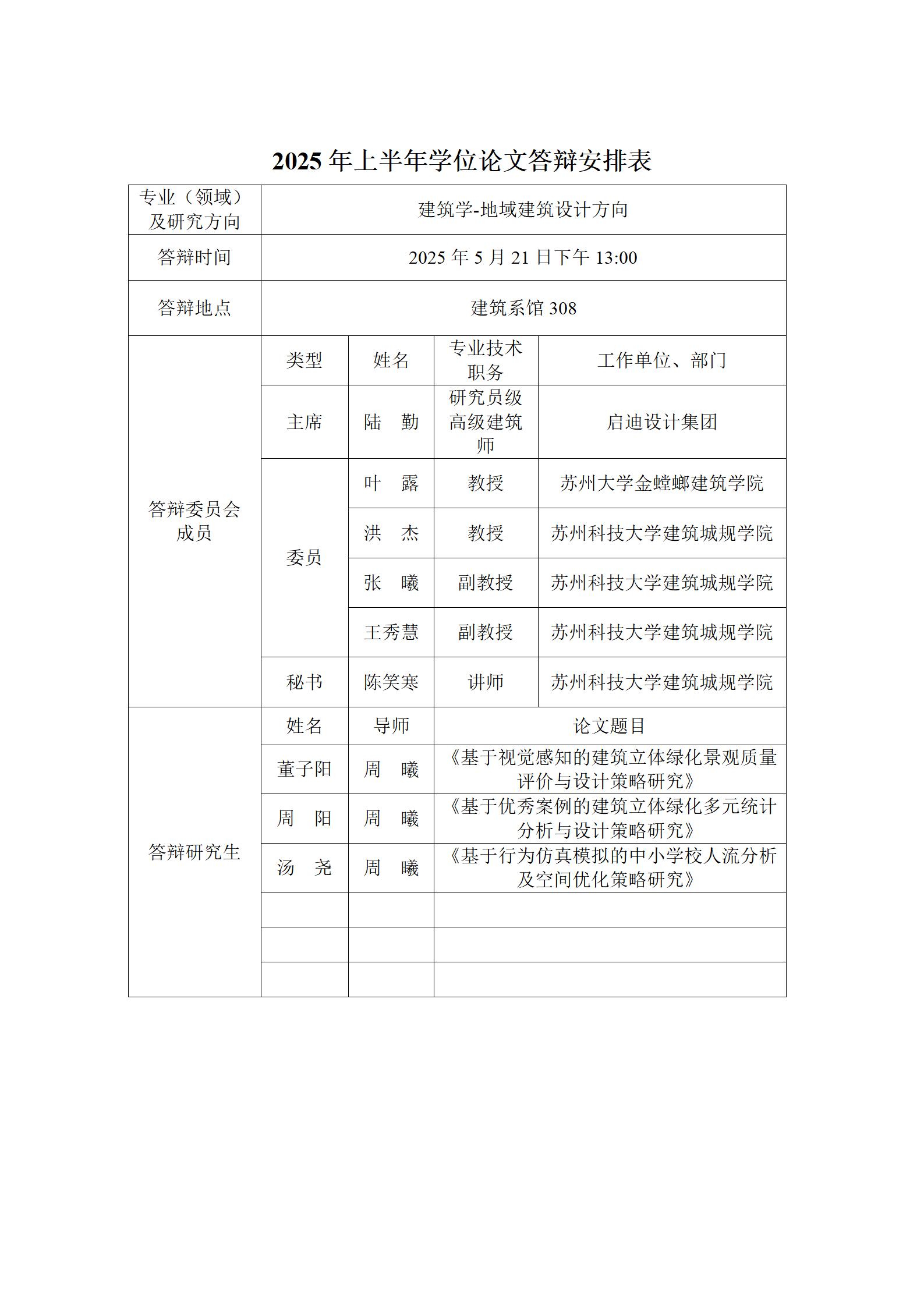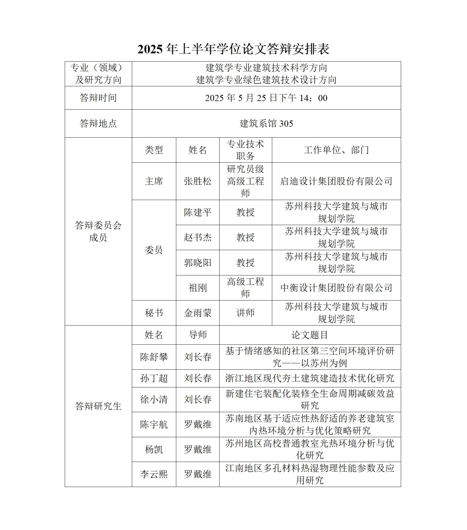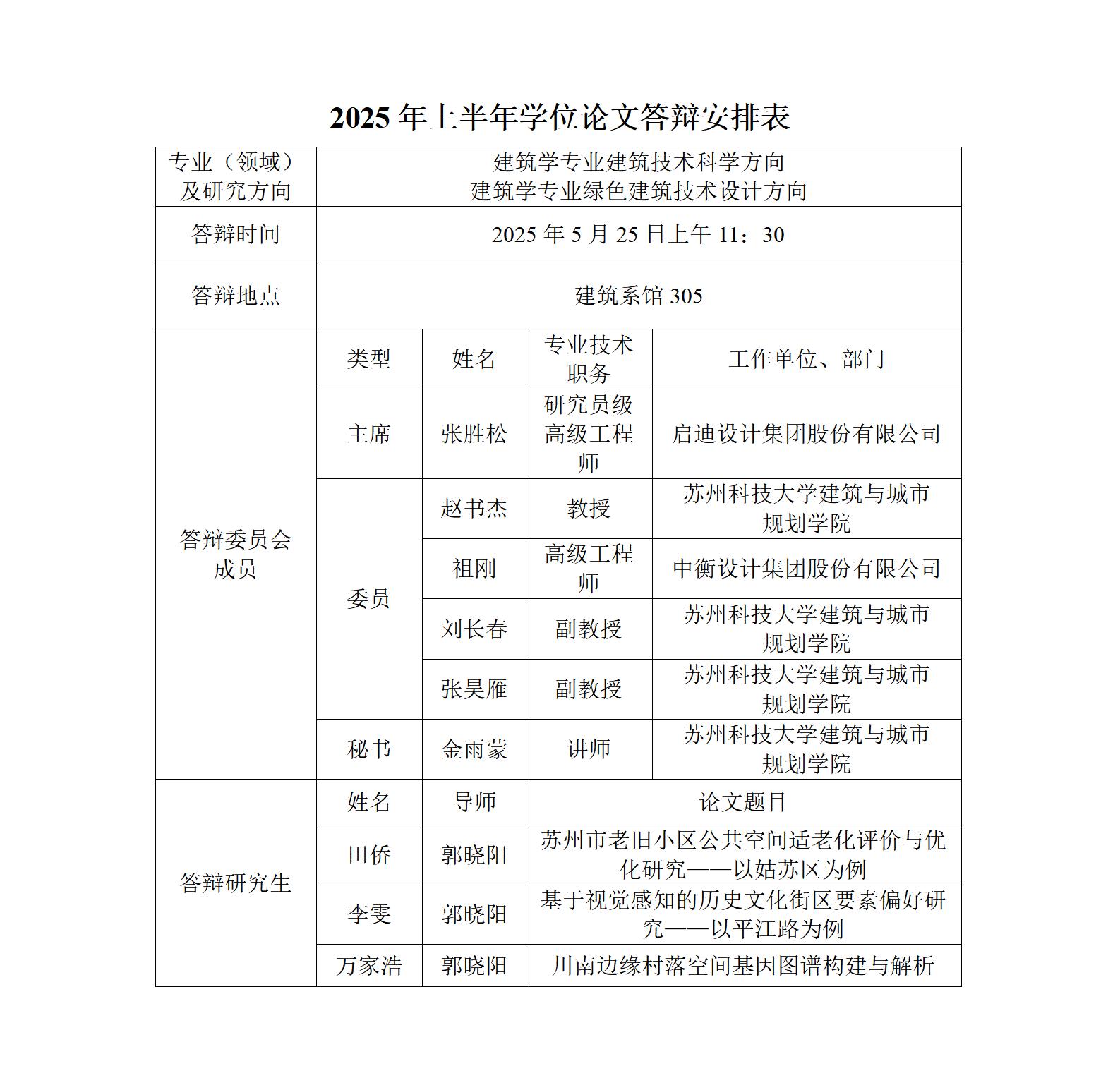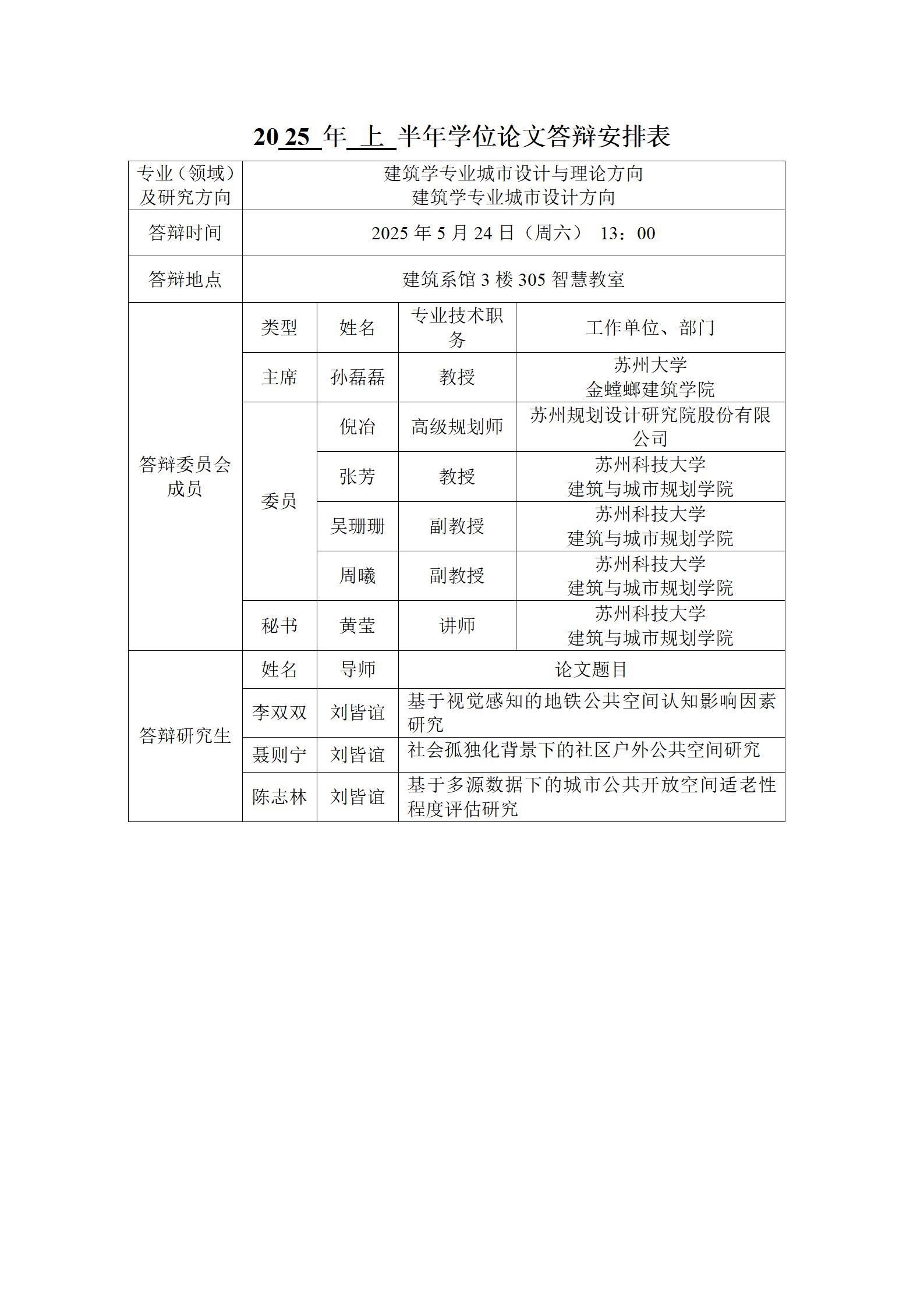 2025年上半年学位论文答辩安排表(建筑)