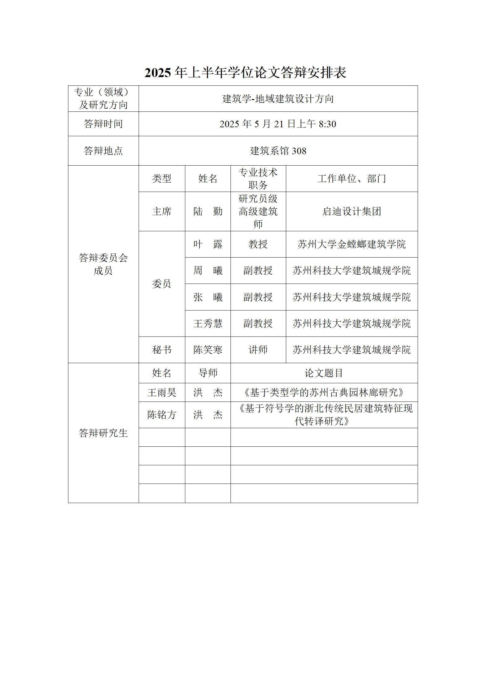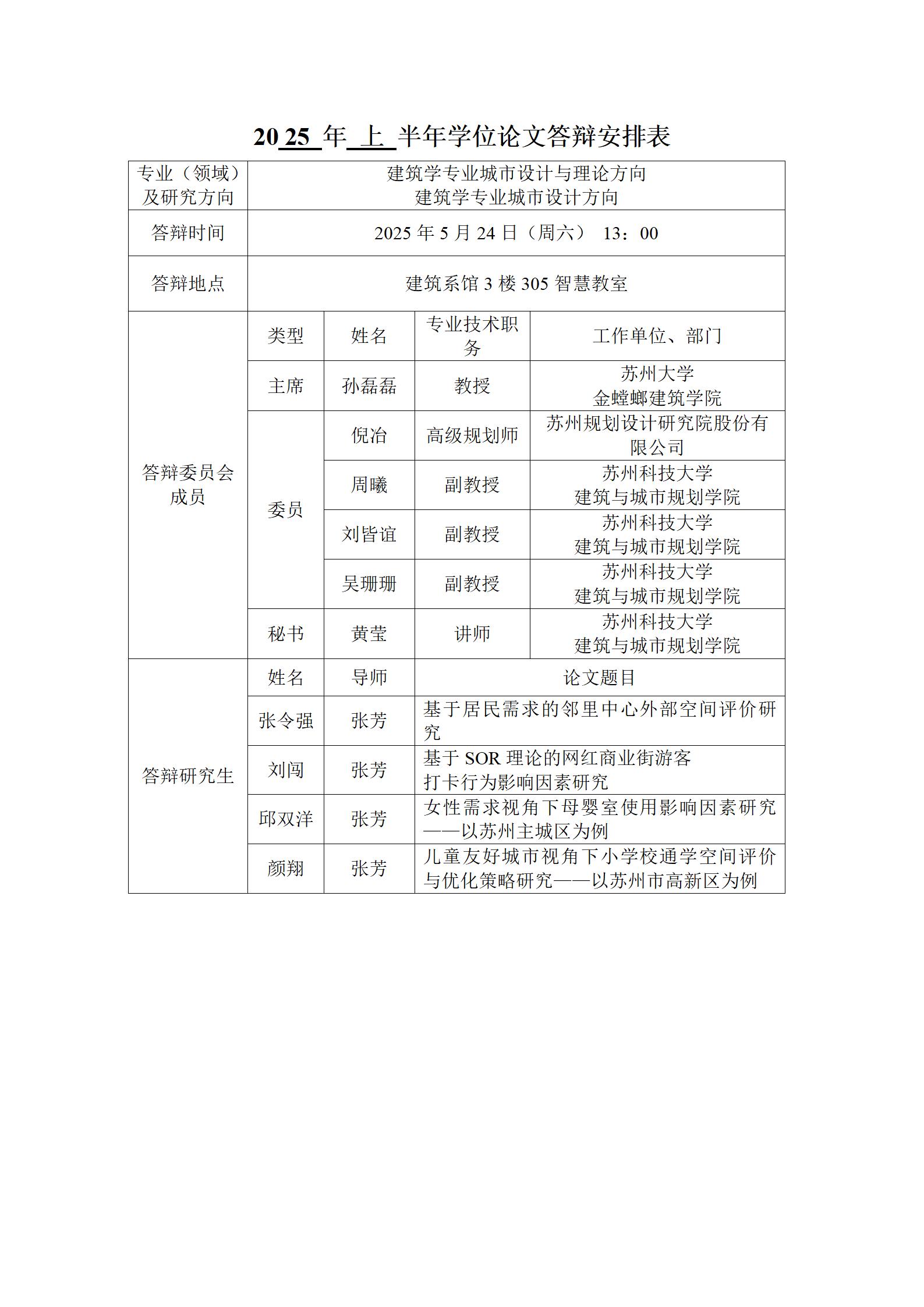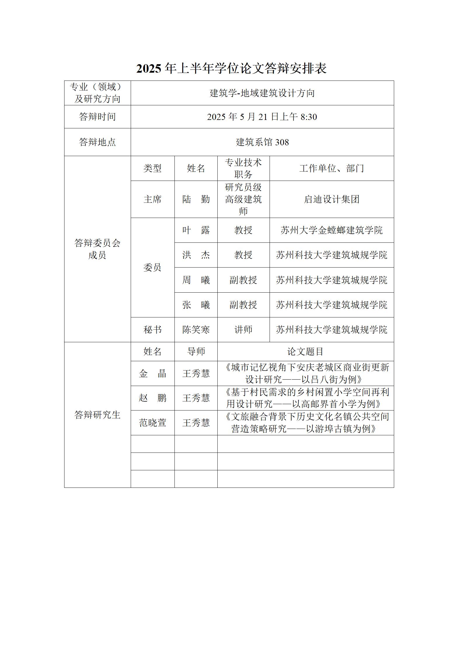 2025年上半年学位论文答辩安排表(建筑)