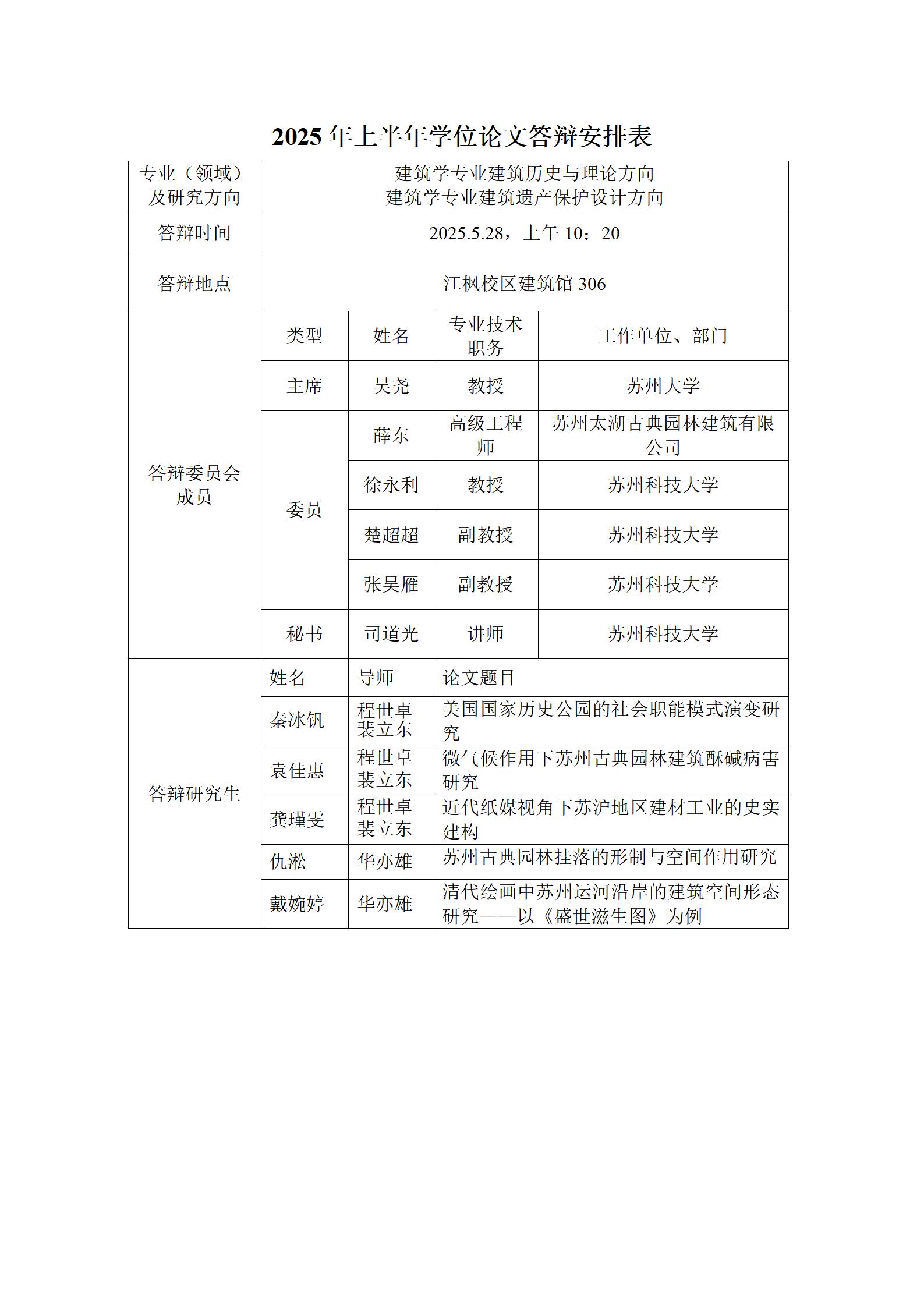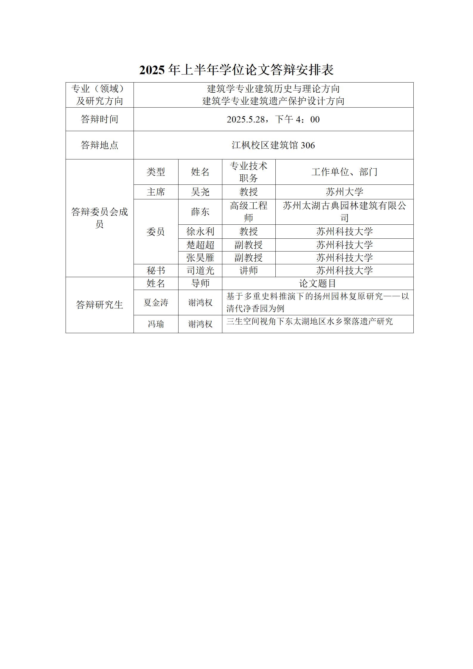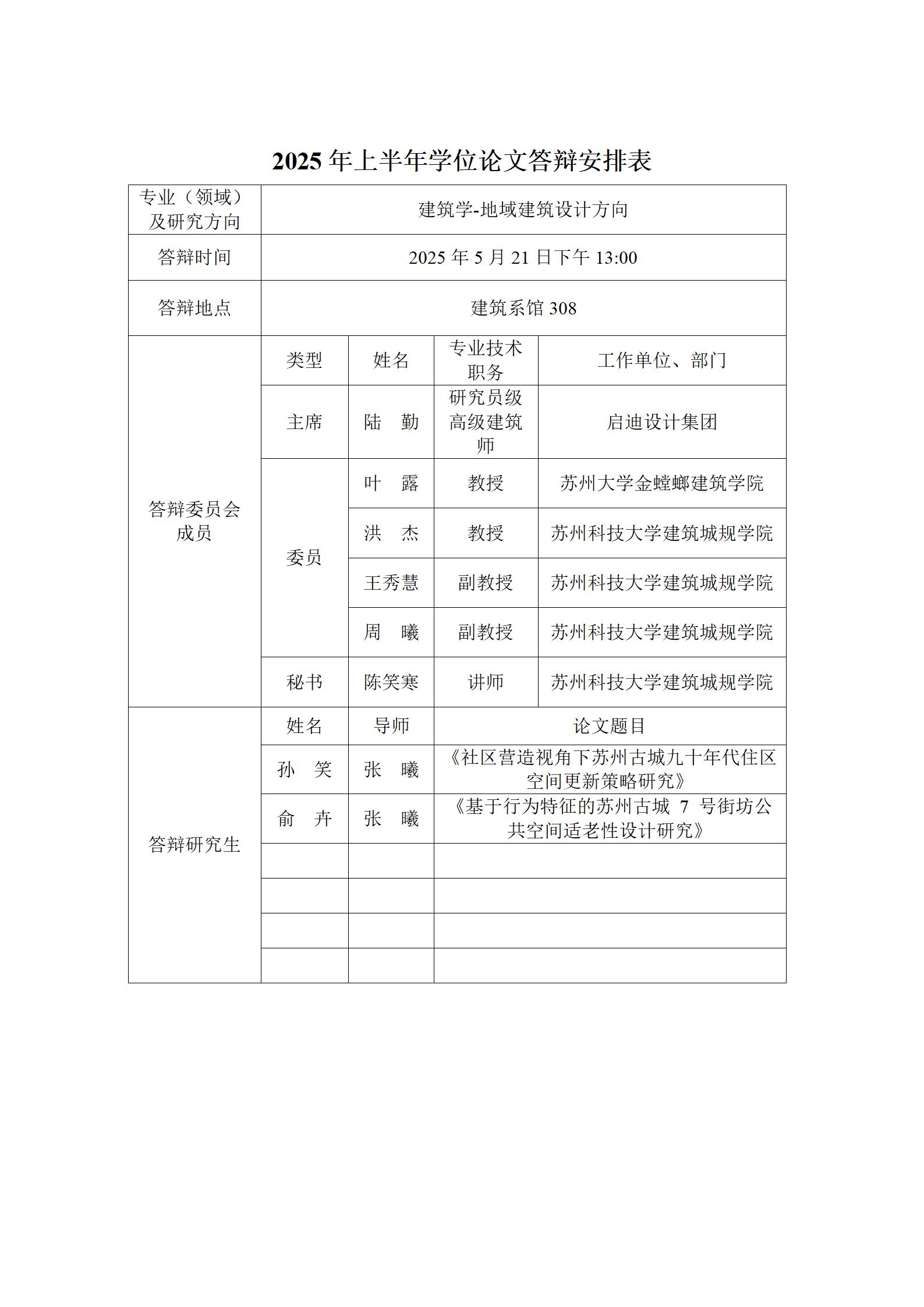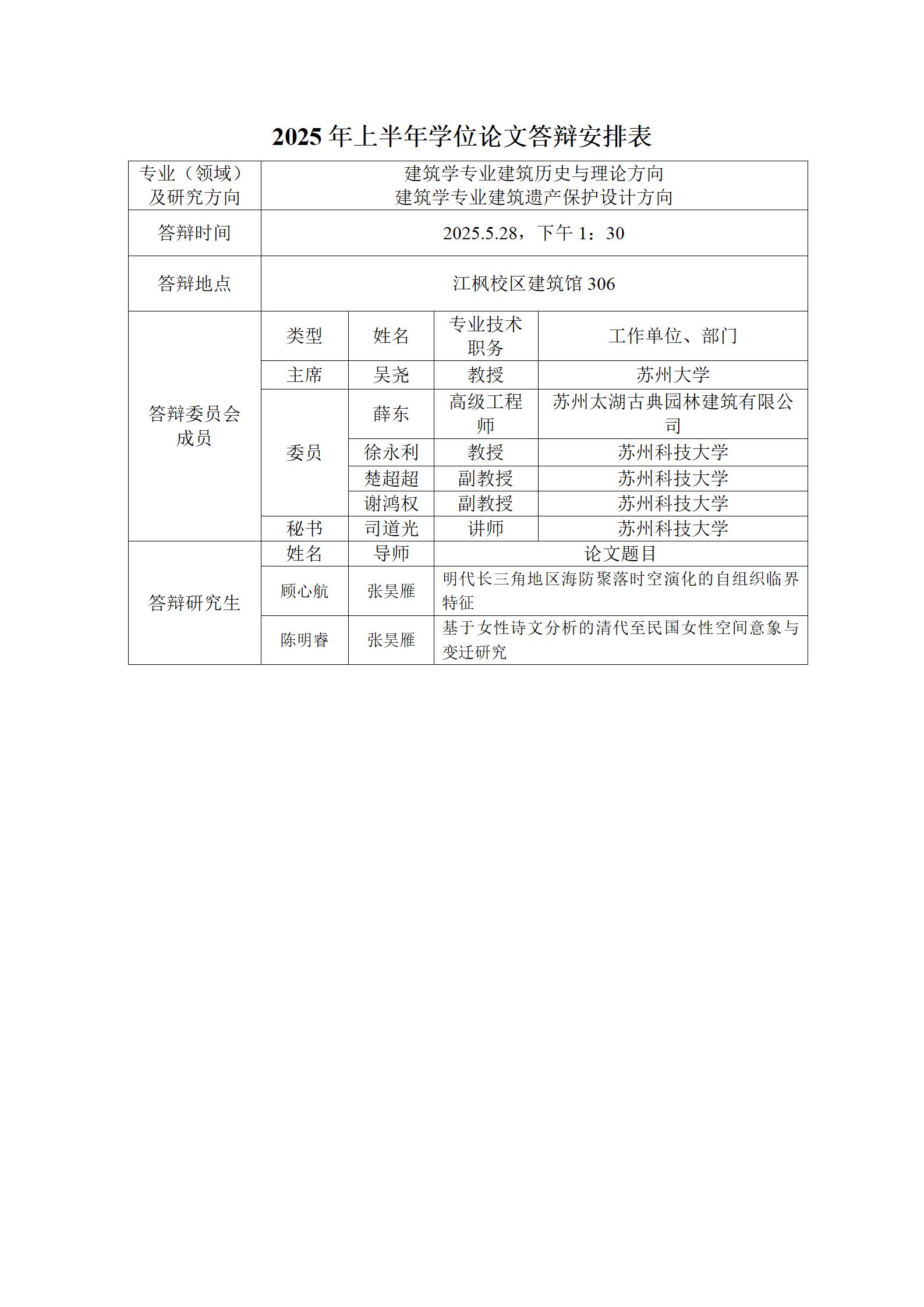 2025年上半年学位论文答辩安排表(建筑)